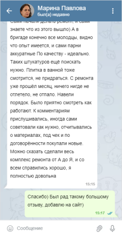 Фирма занимается ремонтом офисов, коттеджей, квартир, дач. Осуществляем любые виды ремонтных работ в помещении. Многие заказчики, которые обращались в нашу фирму, оставили положительные отзывы, они размещены на сайте. У нас представлены фото интерьеров для ознакомления заказчиков. Мастера сделали больше 1000 заказов качественно и в срок.